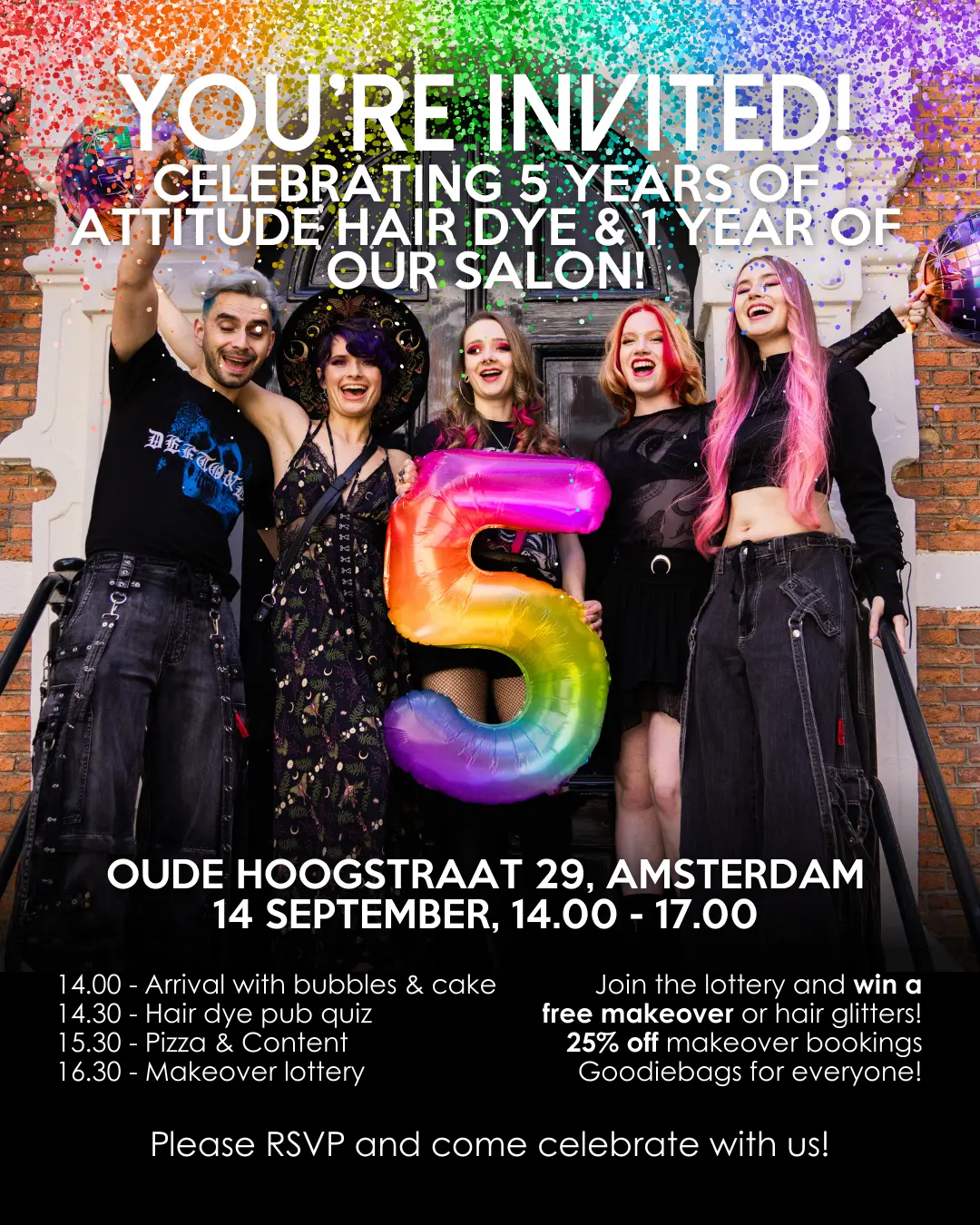 Attitude Hair Dye has been around for 5 years, and our salon in Amsterdam is celebrating its 1st anniversary! We want to celebrate this with you. 💜🌈