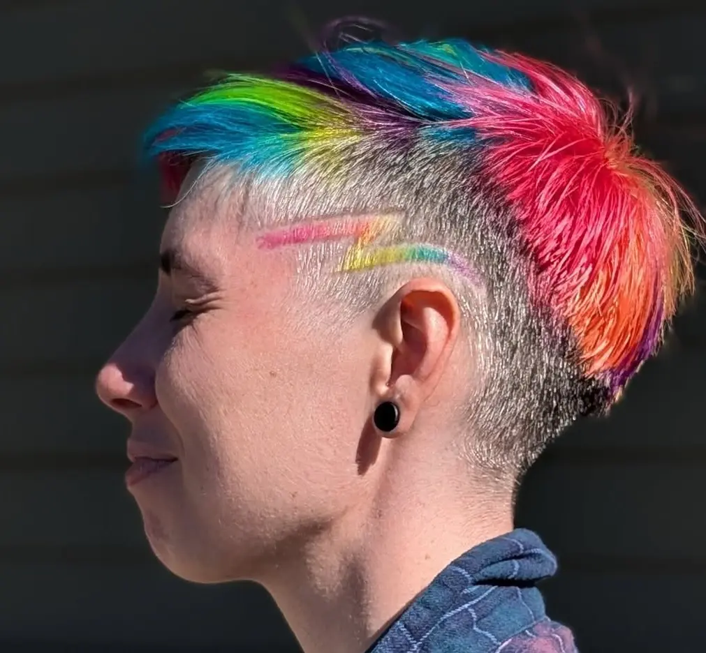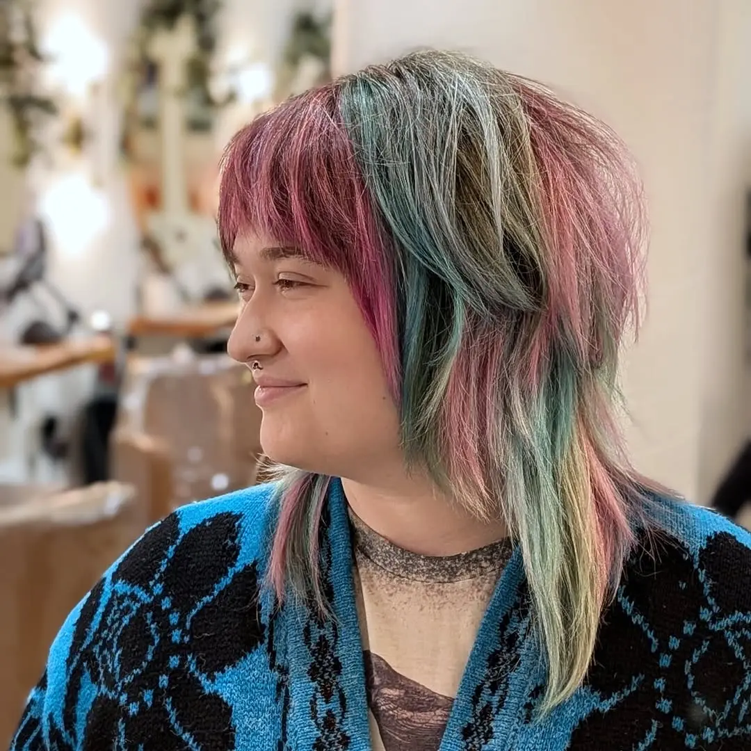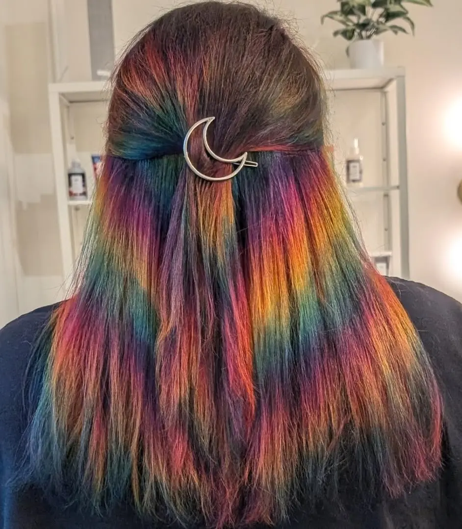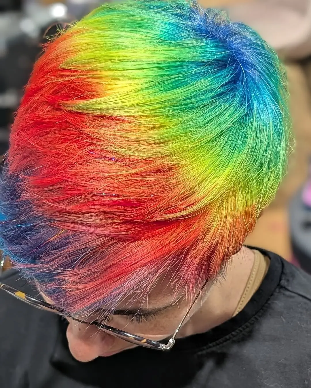 This style allows for a multicolor look as the hair is typically parted down the middle, with each half dyed a different color.