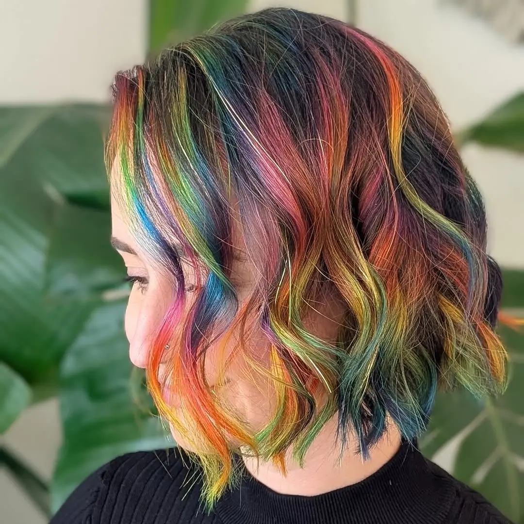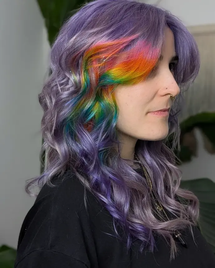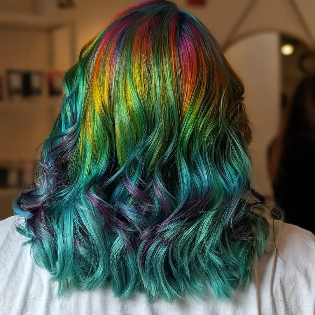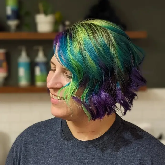 This style allows for a multicolor look as the hair is typically parted down the middle, with each half dyed a different color.
