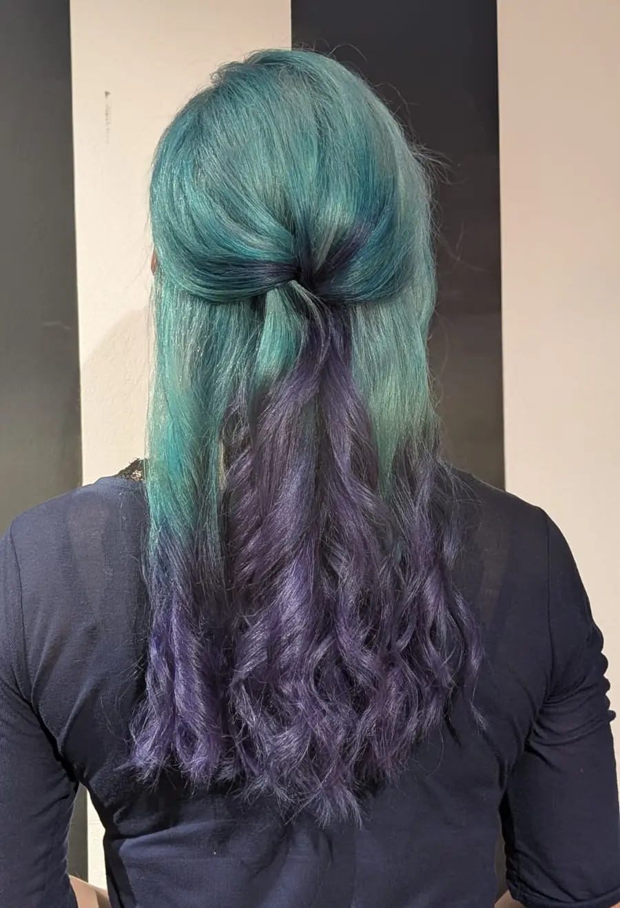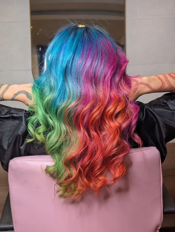 Colourful ombre hair features a seamless gradient of vibrant hues, blending from one shade to another, creating a bold and eye-catching look. This can be with 2 or more colours.