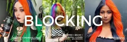 Color blocking is a bold placement technique when sections or panels of hair are colored in contrasting colors. This is similar to a split dye, but more complicated placements, and often more colours.