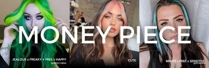Money pieces are face-framing sections at the front of your hair, designed to highlight and brighten your face, and provide a contrast to your all-over colour. This is also a great way to try out a bold colour for the first time!