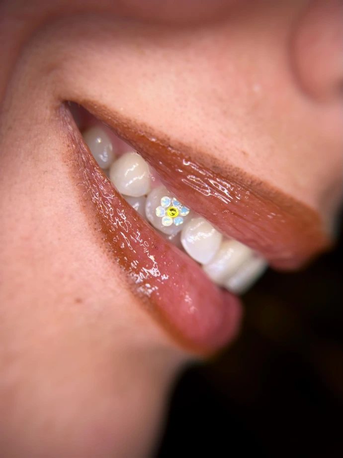 Daniela is a tooth gems artist from Portugal. She fell in love with them in 2023 and is now bringing her work in frequent visits to Amsterdam.